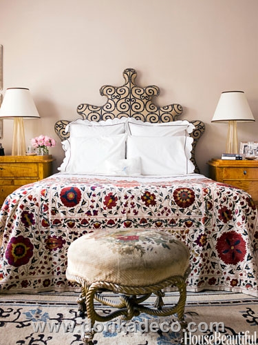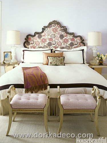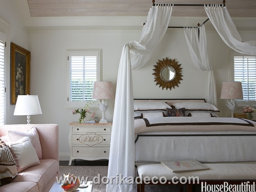 این اتاق خواب بسیار زنانه است ولی در عین حال بسیار شیک و مصمم است . در این اتاق خواب یک تاج تخت که الهام گرفته شده از سبک ونیزی است , استفاده شده است .