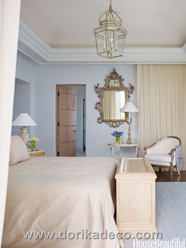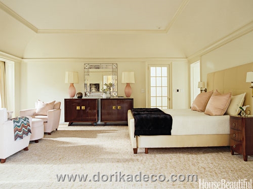 طراح بر این عقیده است که این اتاق هر چه بیشتر زنانه به نظر برسد و به همین علت از رنگهای کرم , طوسی کمرنگ و رنگهای کمرنگ دیگر استفاده میکند .