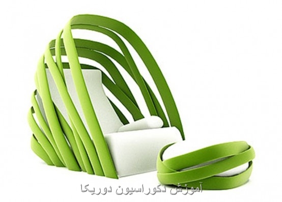 اما در بحث طراحی المان های دکوراسیون و همینطور طراحی صنعتی و طراحی محصول متفاوت است در این نوع طراحی با استفاده از فرم های طبیعی یک محصول طراحی می شود مانند این صندلی زیبا که از فرمت این برگ ساخته شده است .
